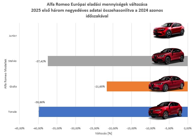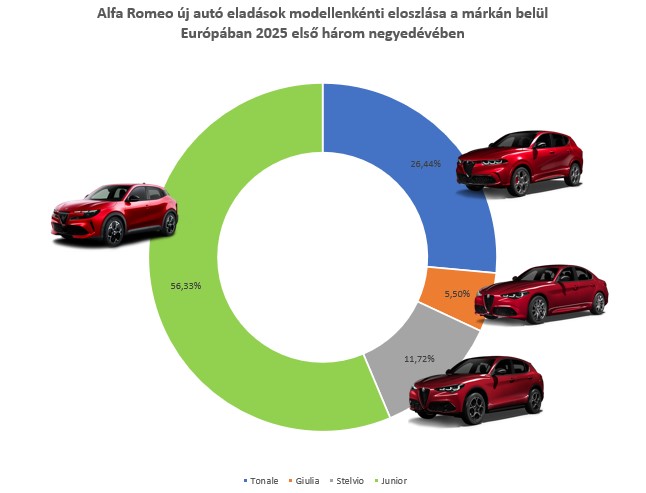 A magyarországi adatok is érdekesek, bár nem sokat változtak az első félévihez képest. Nálunk is a Junior a legnépszerűbb Alfa Romeo, viszont a Tonale nem hozza azokat az arányokat, mint a többi európai országban.