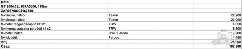 Csatoltam a cserélt alkatrészeket.